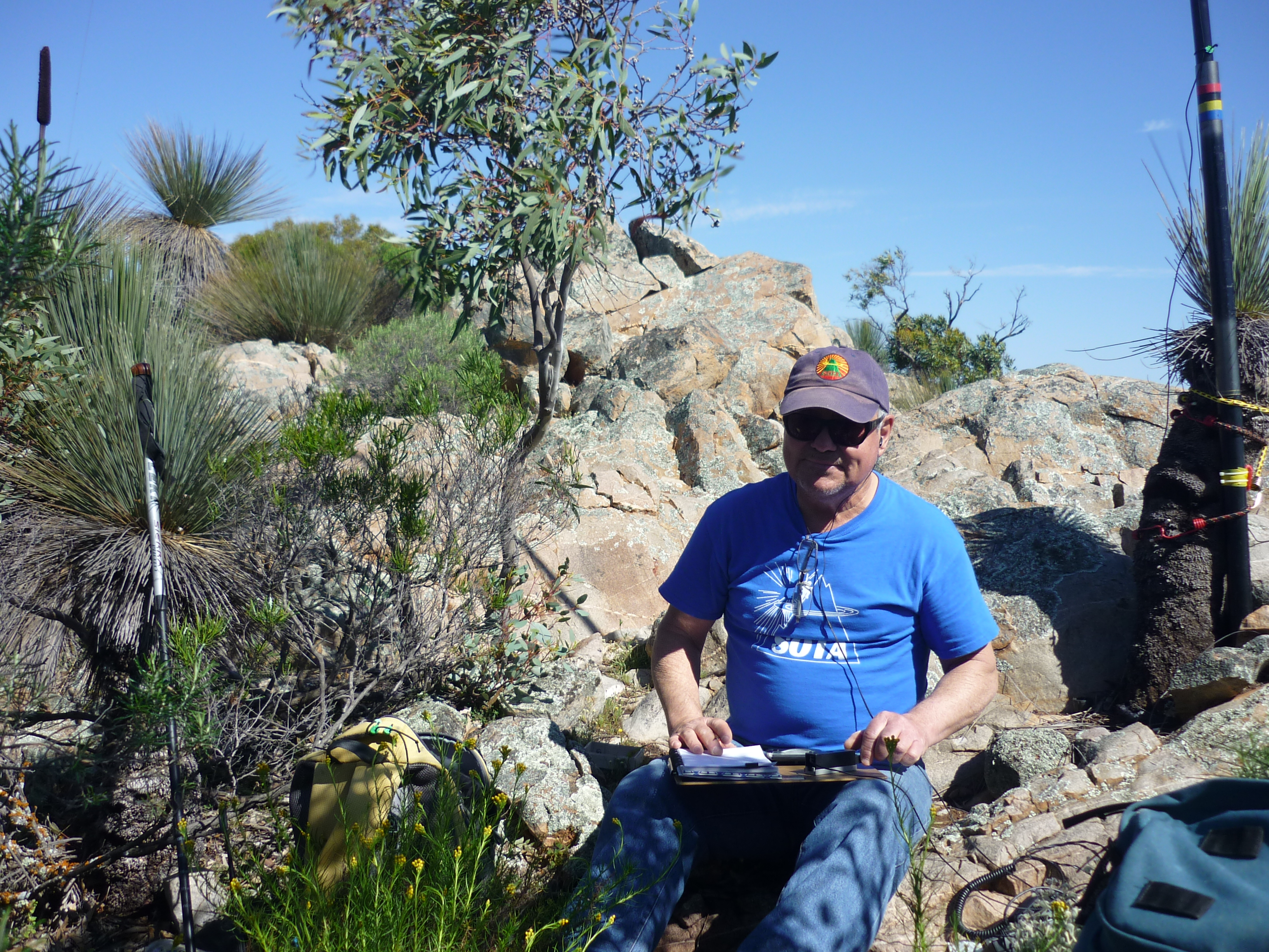 Hugh made a nice score this time on 40m with band conditions still a bit hard on the closer in stations so I just went to cw when my turn came about. I worked several of my faithful chasers in vk 2 3 4 7 with vk7cw Steve sending with his side winder key which sounds like a bird singing in a tree to me. I don’t hear many on this type of key but as Steve is a master of it, it sounds really nice, bit like a bug key but better I think. Being early morning in Europe I went on 20m cw and straight away had a pile up of EU stations chasing with good signals so it was great to be among the dx after a long spell of poor conditions or timing on the summit. John vk6nu found me this time as well which was my only vk station on 20m and 40m was no good to the west, so glad you found me John. After the rage died down and I run out of EU chasers I went back to 40m ssb to find Nev waiting for me on the ssb frequency and to our surprise he was 20 over 9 this time but an hour before there was no chance of a qso at all. In the quiet location on the summit Hugh could hear Nev but he was not responding to us so we put it down to really high noise and low signal at his end. Adrian came up as well as he was waiting there as well to see if we came back to ssb from cw.