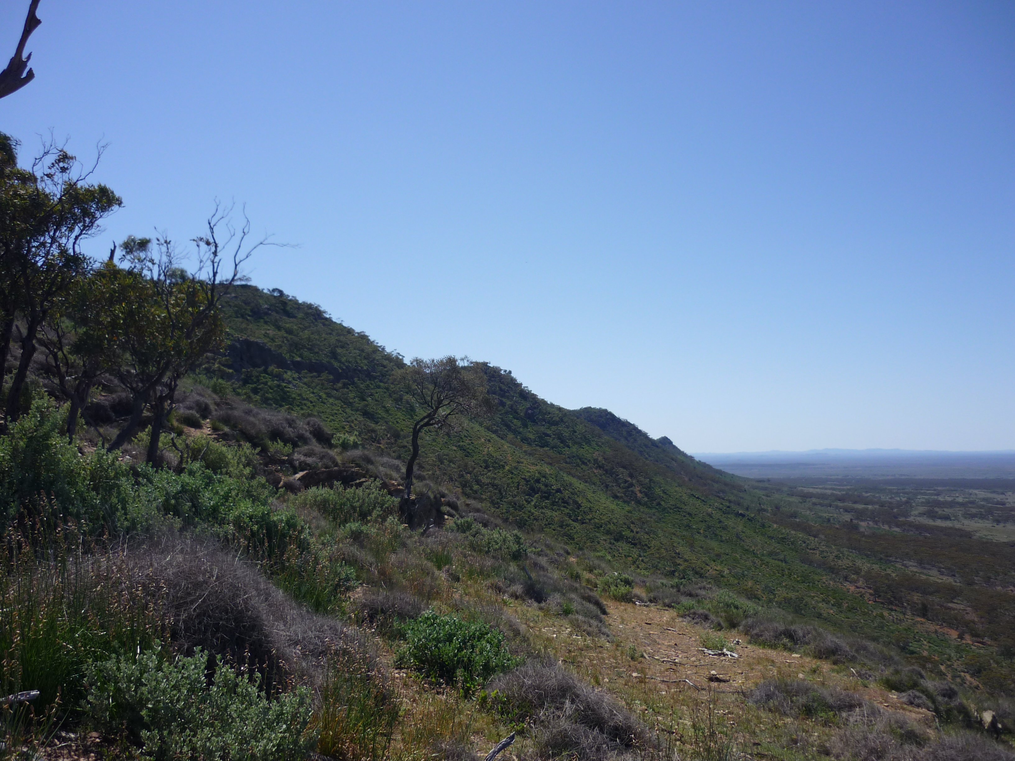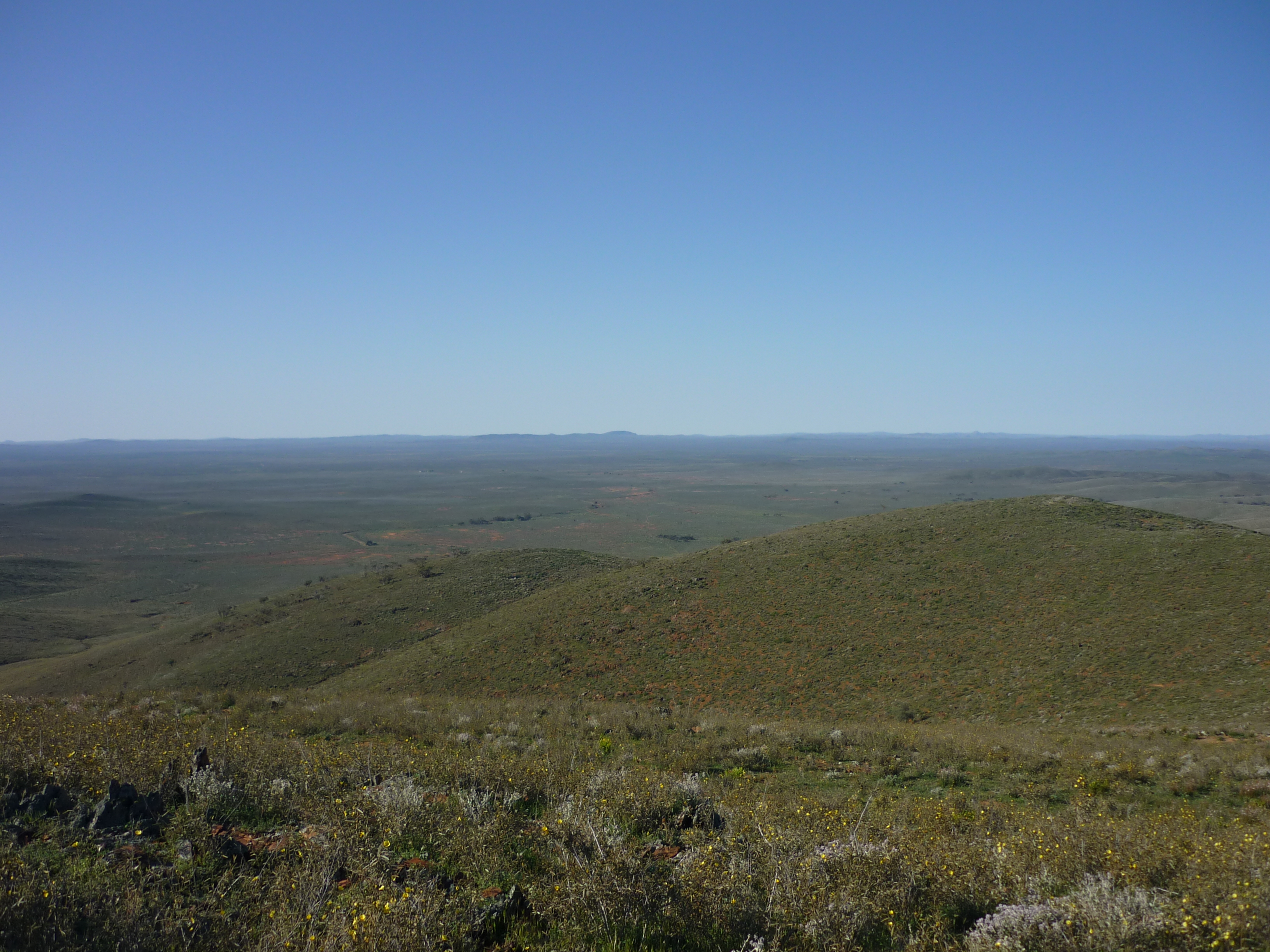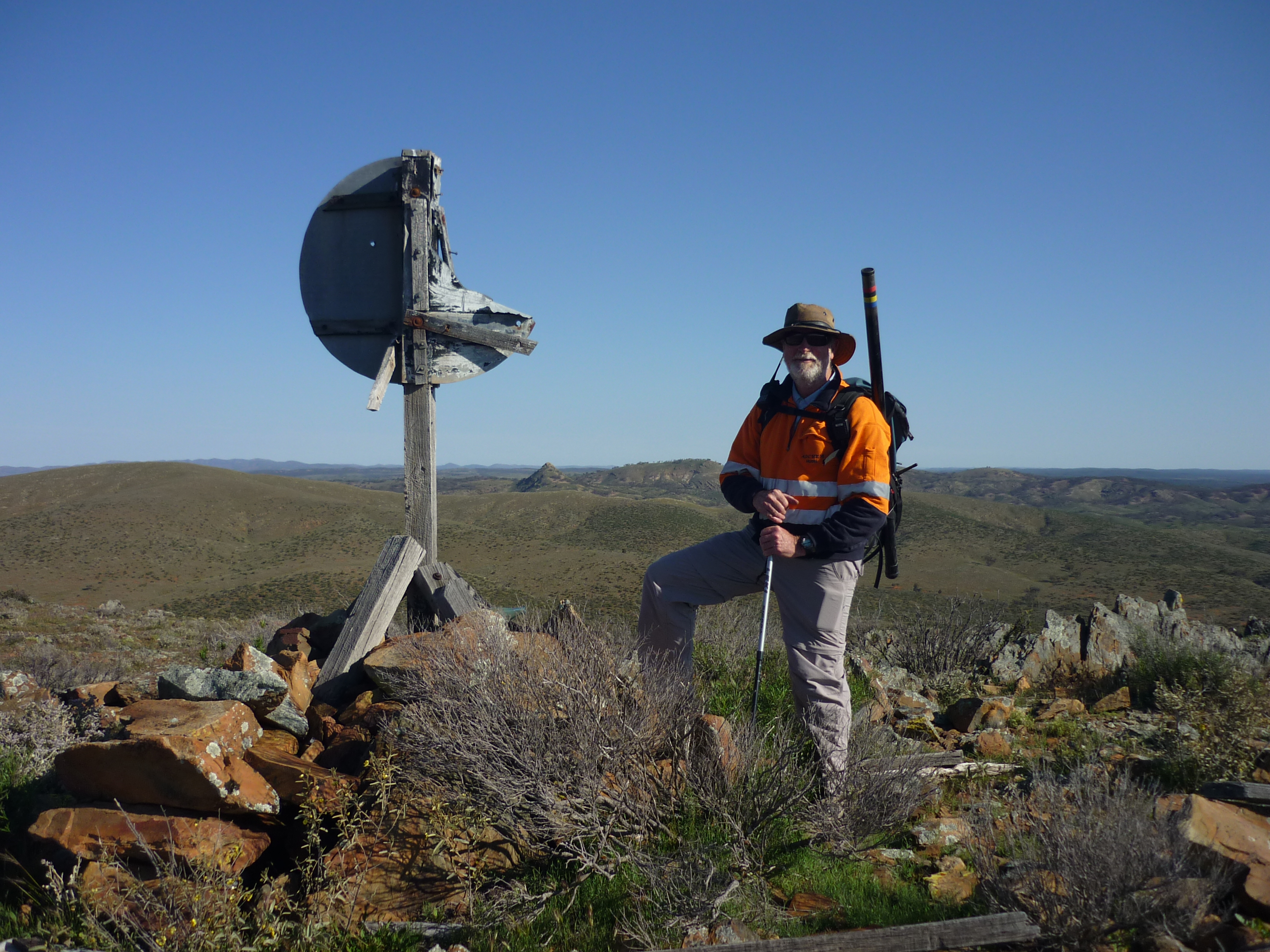 Hill se-006 is an unnamed Summit in the SOTA program, we often have Summits like this and just refer to them by the SOTA reference. After an un eventful dusty drive back from Waite Hill we found Hill se-006 just east of Whyte Yarcowie up a dead end road into the property. We saw many Kangaroos here I recon its the most I have seen in one mob in a long time . The track to the summit was quite easy to get along and we headed up to the top of the hill picking a line along the saddle which was quite easy this time. One thing that was new was we had to take a sledge hammer and our own picket into the activation zone as this hill has not trig or trees. We did find a Box Thorn bush on the western edge so we set up there.