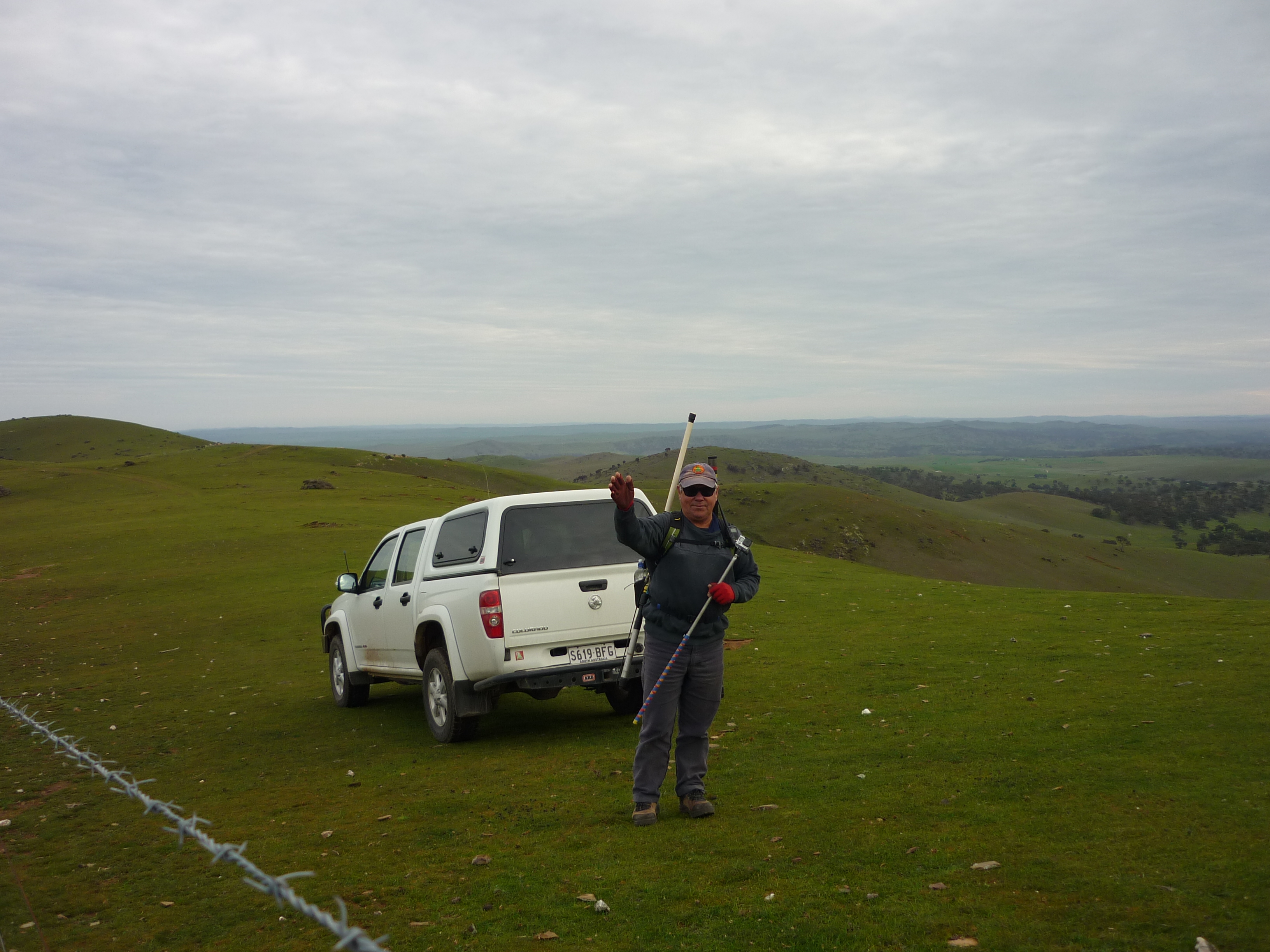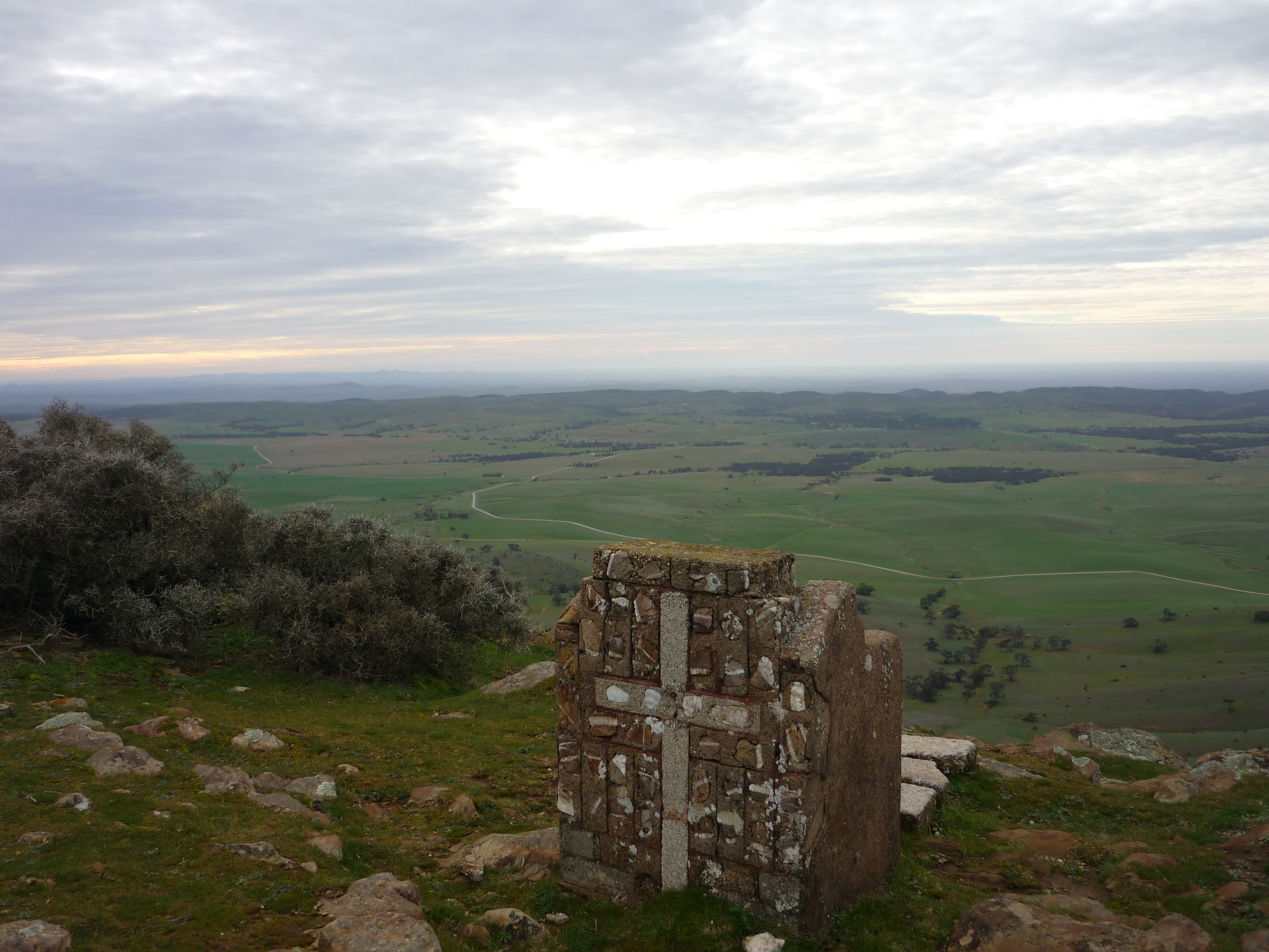 Got away to a good start this morning and decided to try the newly found dirt road short cut to Hallett which cuts off quite a lot on the trip out east. I changed plans a bit with an over night stay in Orroroo, that way its only about an hours drive to The Dutchman in the morning, so I activated at Mount Bryan on the way. The farmer lets me use the 4×4 track to get to the back of Mt Bryan and that saves a 5 km hike for the activation. The weather was overcast and quite cold but it did not rain this time like last year and a strong wind was blowing. The track up has been graded recently so no issues getting there although the road was a bit washed out in one place on the side of the hill.