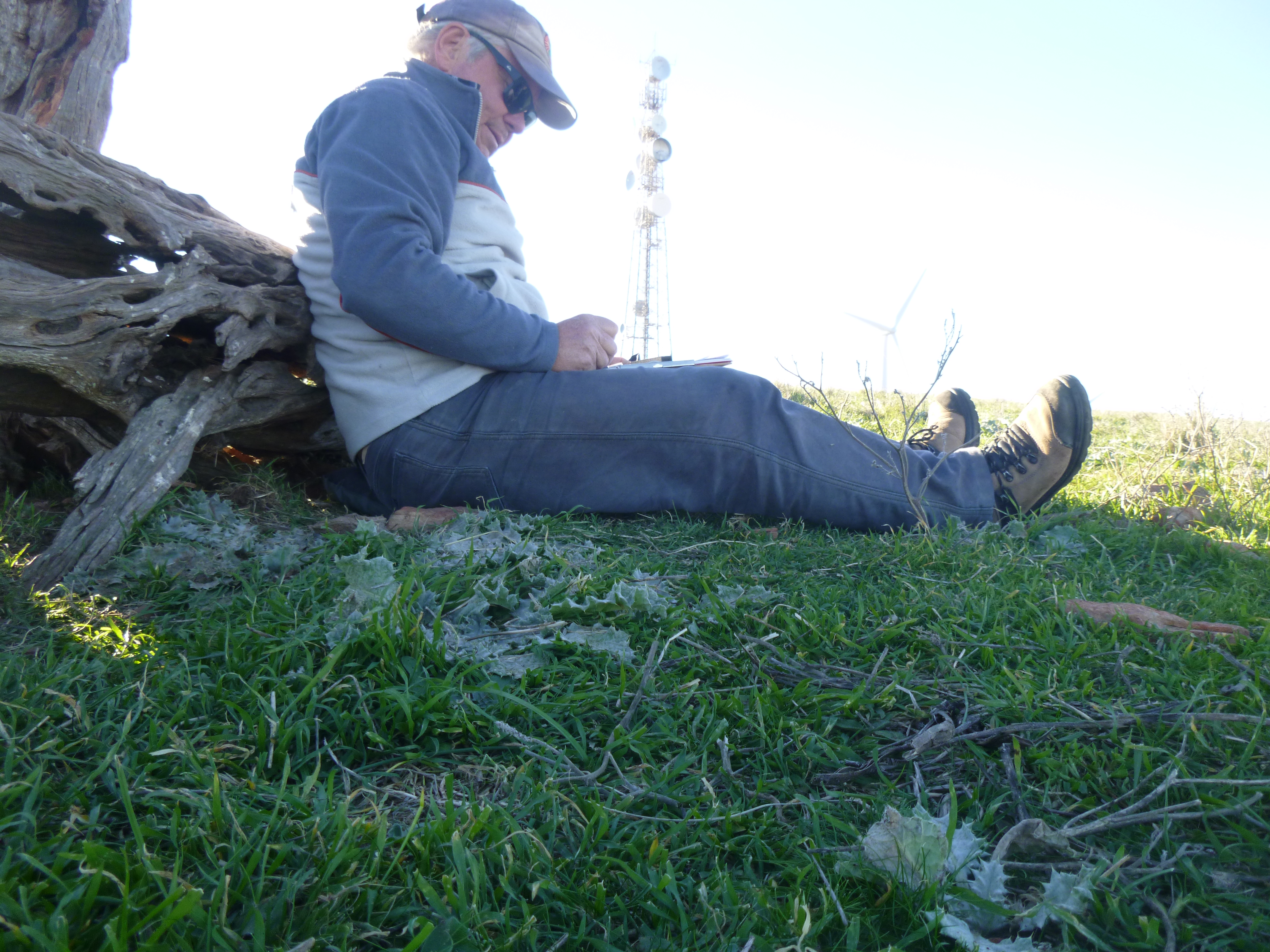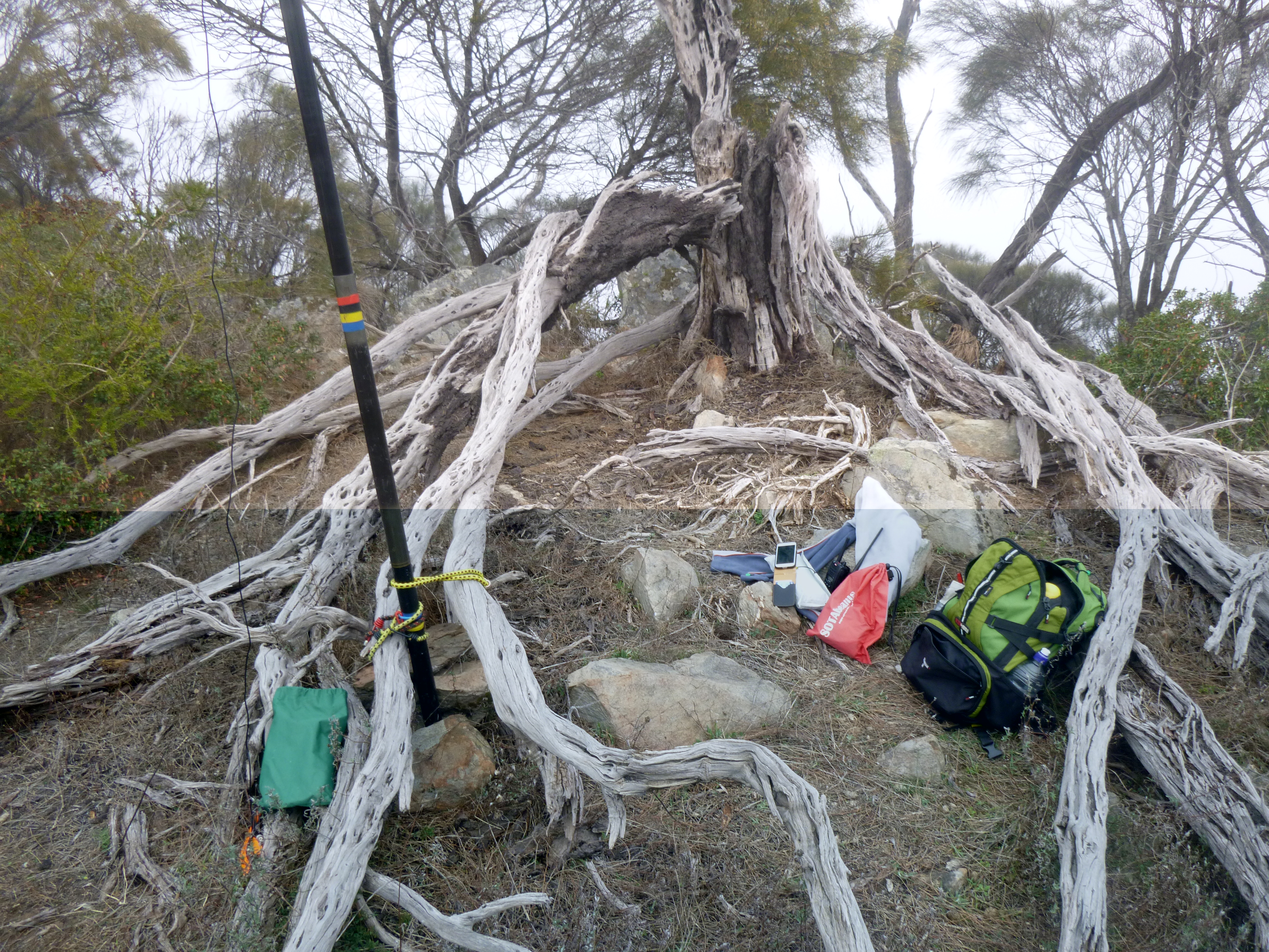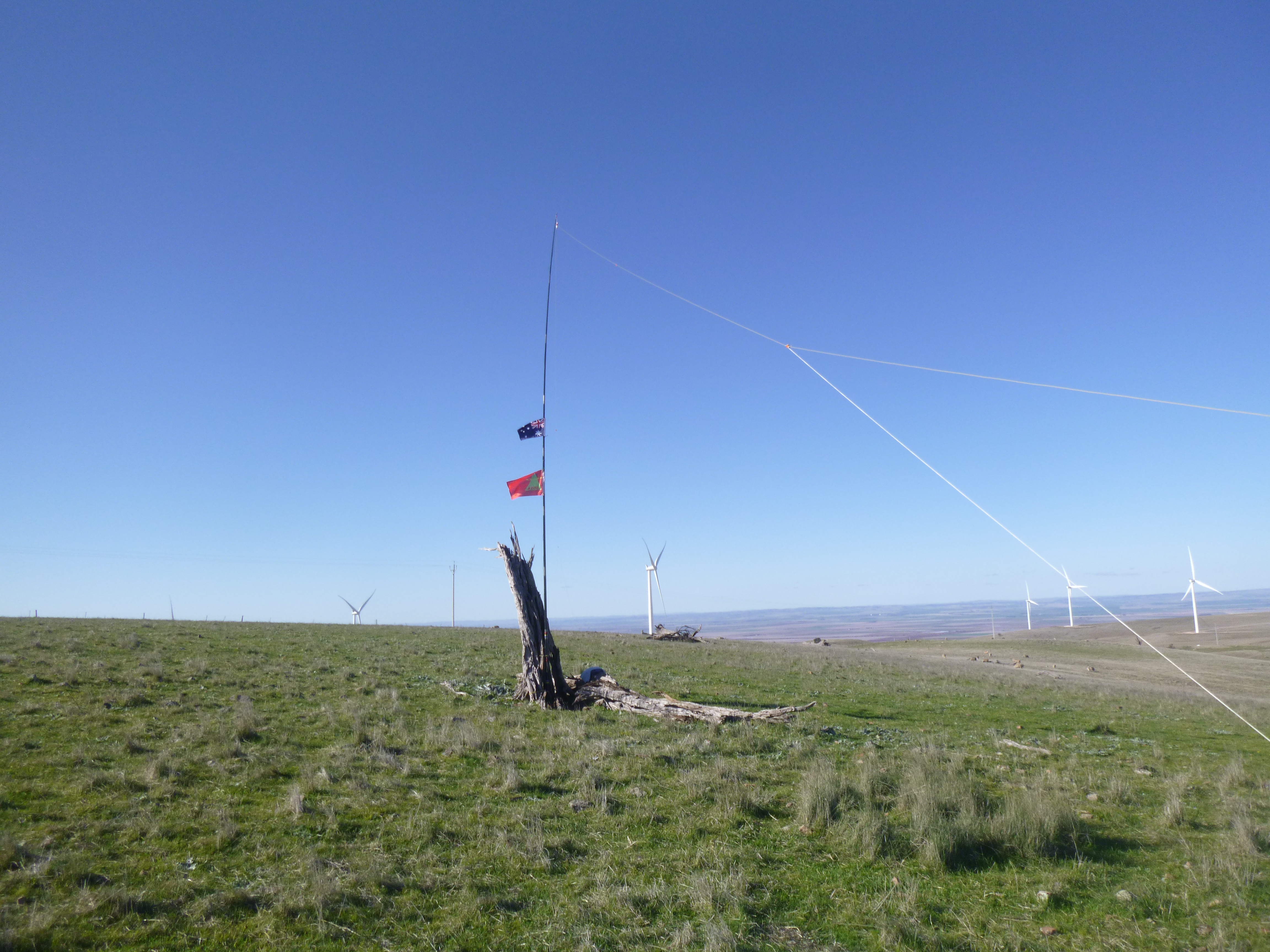 Ian VK5CZ among the chasers on 40 m CW with good contacts around VK ZL and an extra surprise call from EA8TL from Spain later in the afternoon on 20 m cw. Needed the ear buds on this summit as the wind generator is right near the summit and was turning rather fast in the stiff breeze at the time.