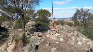 My shack at the top rock pile and the old shot up trig point. View from the top is not good, too many trees making it hard to set up my 80m dipole but it still seems to work laying on the bushes near the ends.