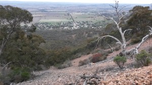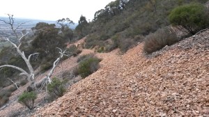 On the way down I decided to try the new walking track called the Southern Loop Trail, claimed distance was 6.5 km but according to my eTrex 30 it was more like 7.8 km by the time I reached the SOTA transporter. Had a senior moment at the 3 km mark, I forgot to pick up my hiking pole when I stopped for a drink and resumed my hike without it. I realised after a km or more that I had forgotten it and I had to back track and retrieve it which gave me an opportunity to see how hard it would be to ascend to the summit on this path. It has great views from the South end of the mountain and you can see as far south to the hills on the northern end of the Clare area. I could easily spot the Grain Silo at Gulnare about 100km to the South.