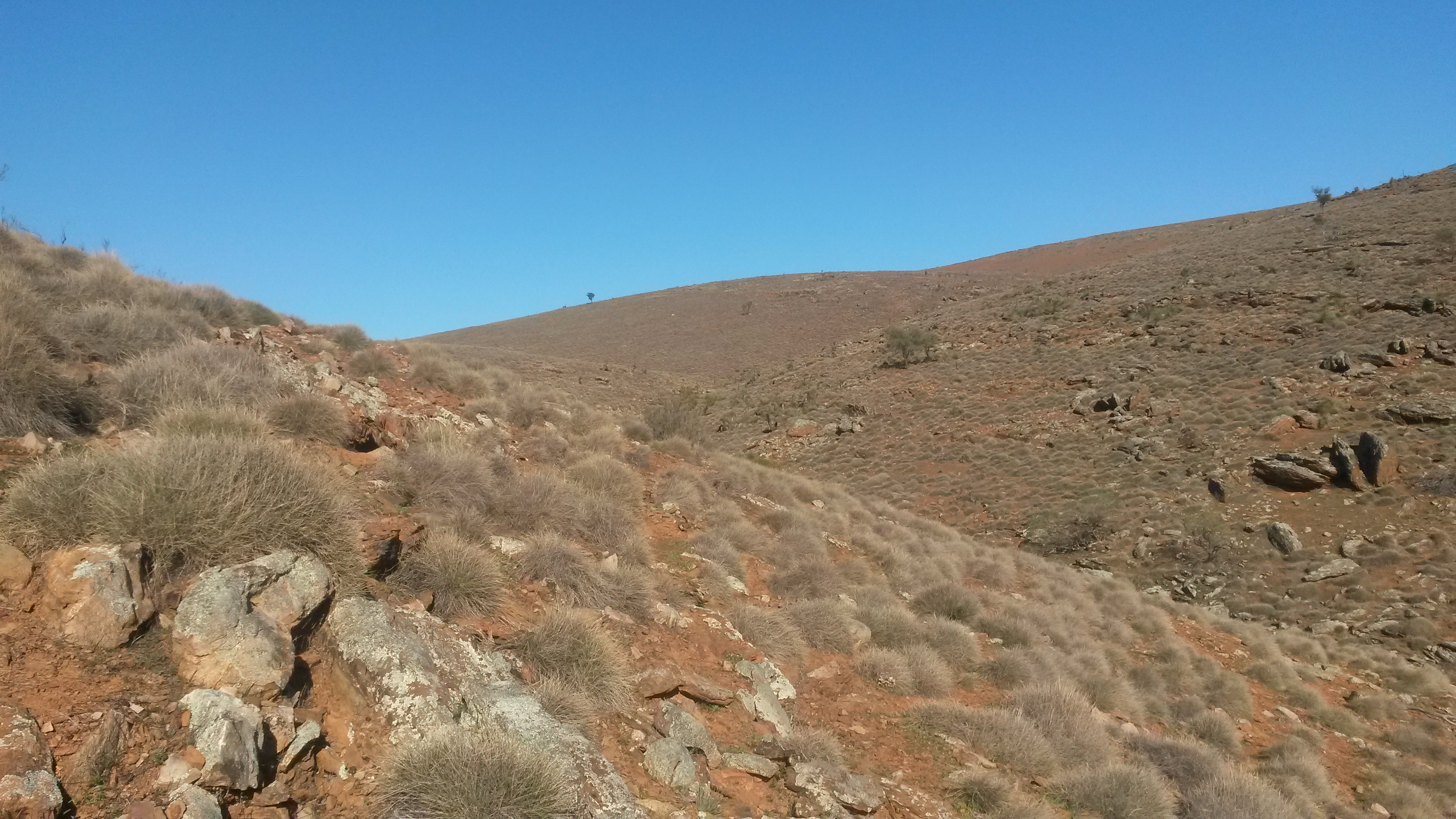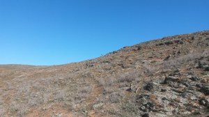My path is up that valley with a gradual climb all the way, the small tree is the Ridge top.