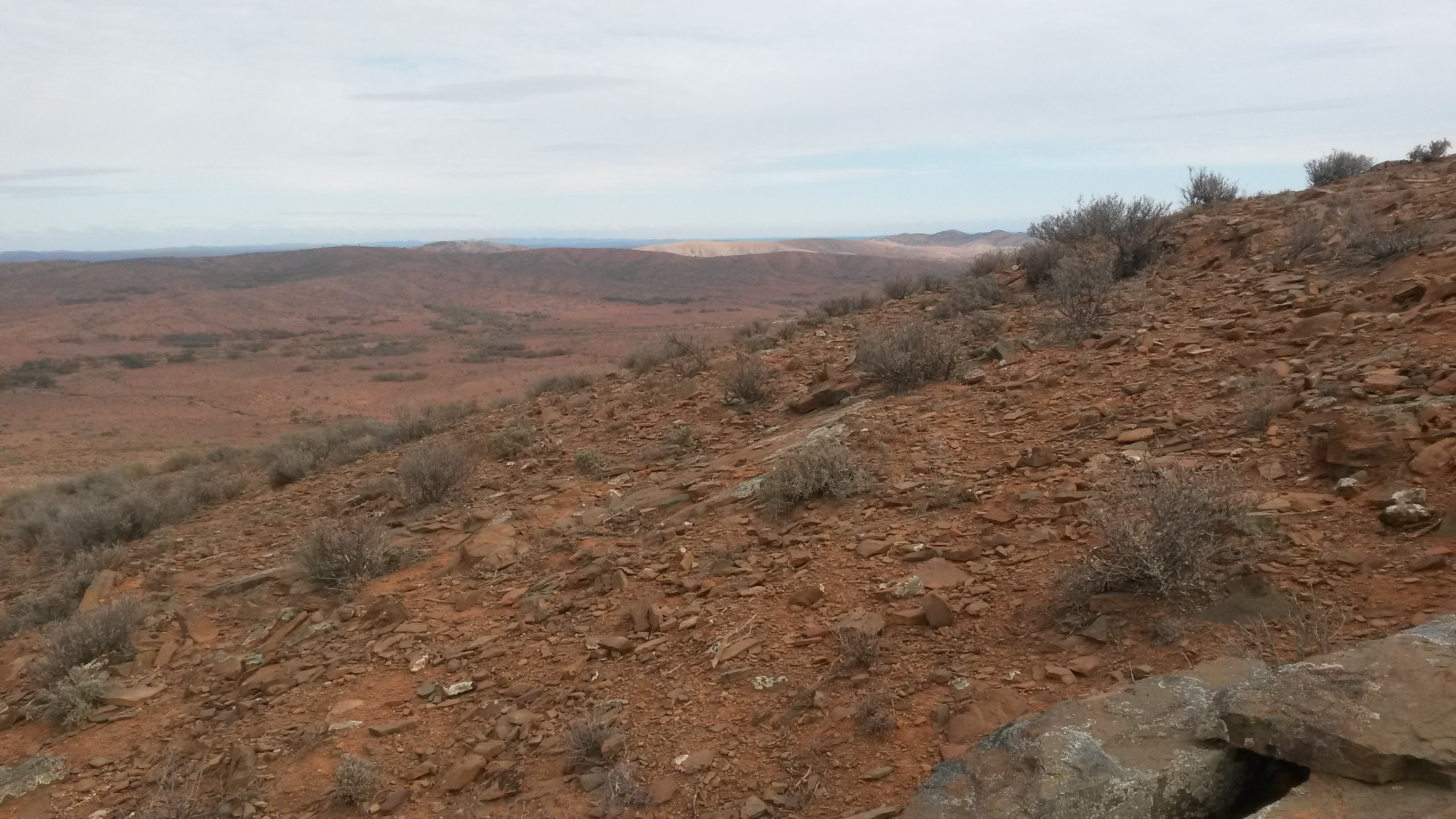 Lots of chasers here on vk5/ne-102 with 3 stations I have not worked before on SOTA making it 5 qso on 80m and 9 on 40m ssb and cw. When I got back to my Ute it seemed like mid afternoon to me not midday, probably because I had been on the go since 3 am. But can’t hang around I still had another 30 km of Station tracks to reach the last summit for the day vk5/ne104. Being by myself for the first time on these summits I did not have my gate opener who is still swanning off on his European trip, it takes a bit longer to get anywhere. Lucky me because of the drought most gates on the property were already open probably to allow stock an easier path to water. The track was very dusty and dry but taking it steady where necessary I made the parking spot at about 1.30 pm and I made that porridge time, only 5 hours late. Snickers are great SOTA hike food to keep you going. It only takes about 20 minutes to hike to the summit from the Ute so no pressure really nearly on Alert time.