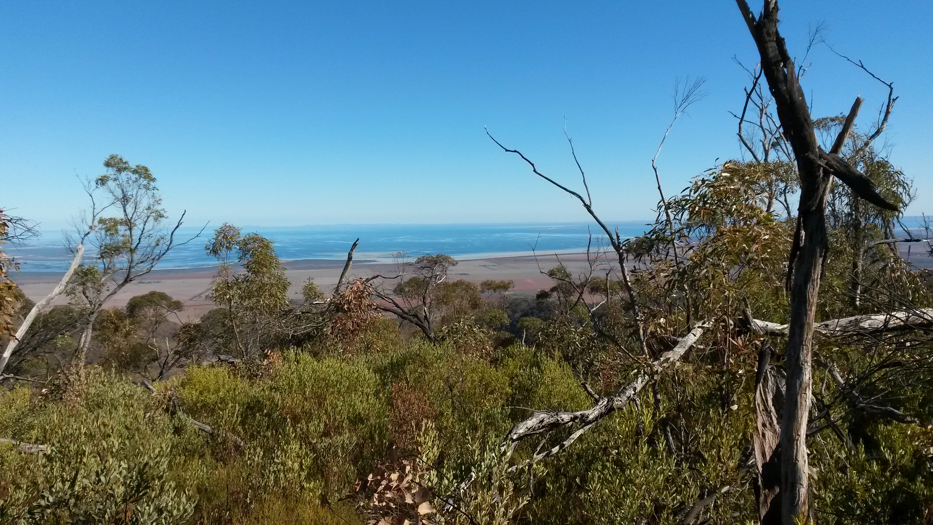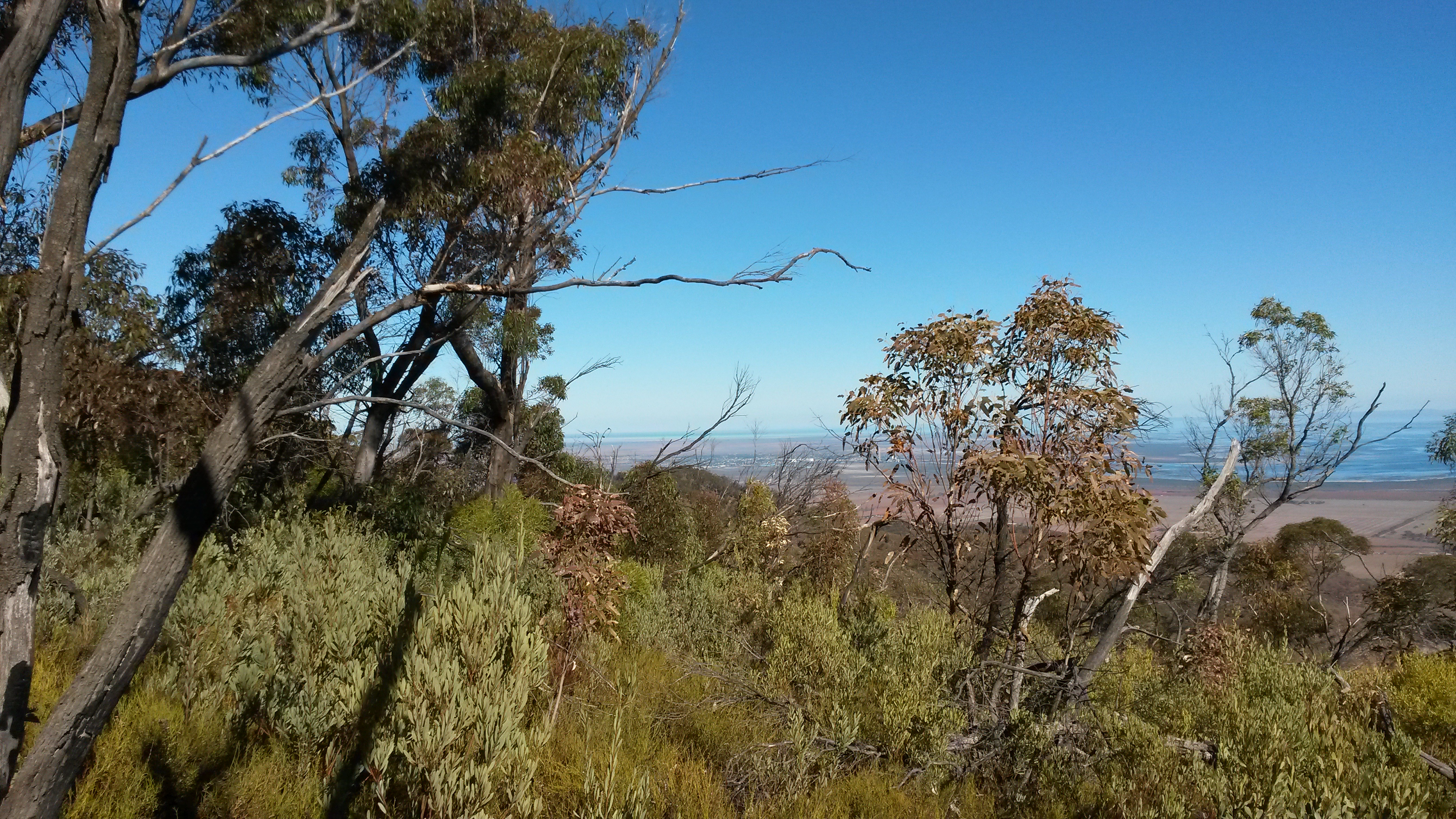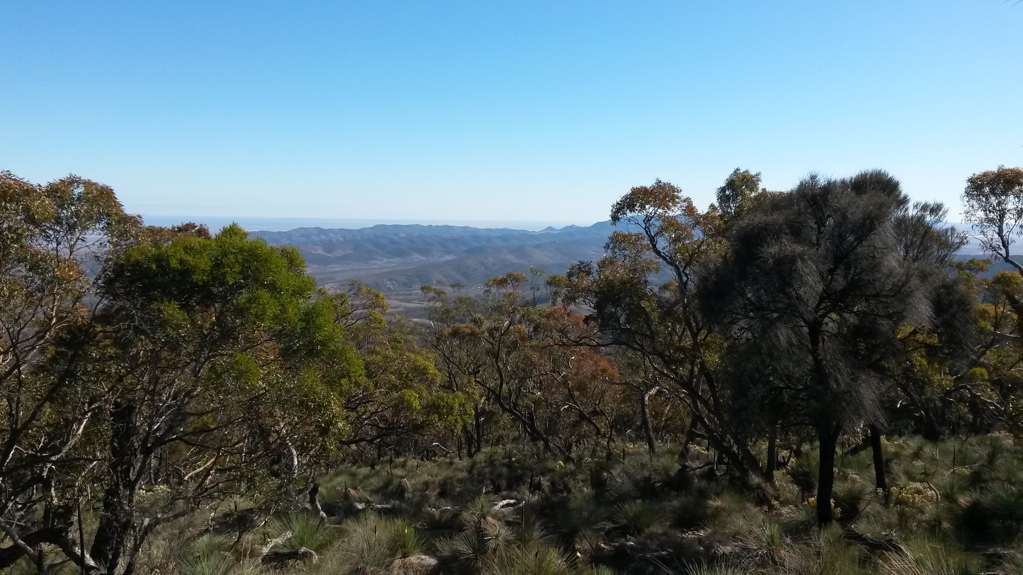 I managed to climb to the top of the summit through the thick bush and get some photos of the Western side of the range. Looking down you can see Port Pirie and Point Lowly on the other side of Spencer Gulf.
