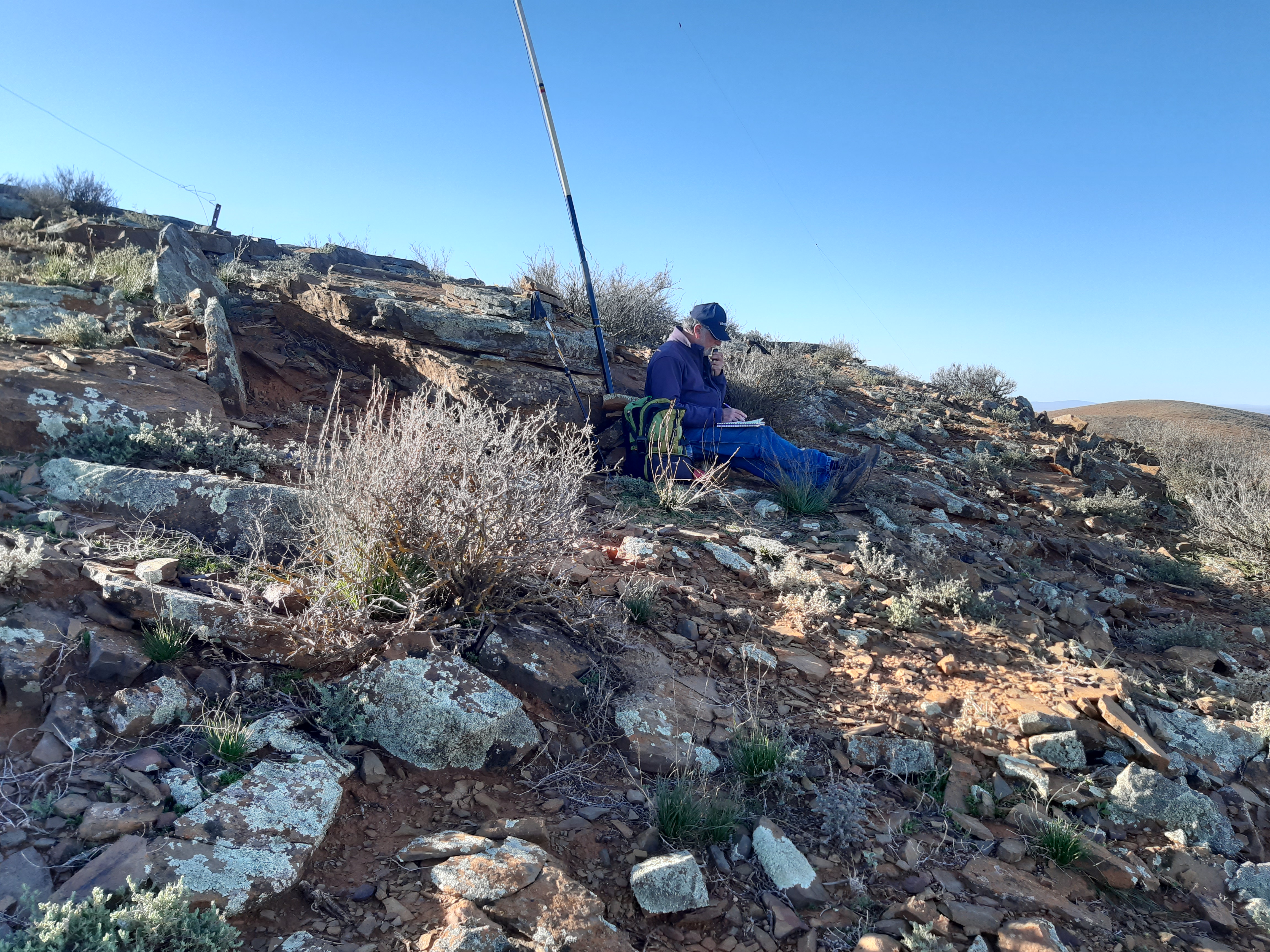Peaked Hill was the first summit in the morning on the way to Bendleby Ranges, some contacts on 80m first then Hugh made a couple 40m SSB QSO and I made 2 CW QSO to have the KX2 die mid activation. Turns out the battery was flat, ok I will put my battery on whoops the Anderson pole connector pulls off Hugh’s power lead. Bugger can’t fix it here so we gave up and moved on. Eke Hill is the southern summit on Bendleby property so we booked in to the accomms first them went out to the summit after lunch. A great summit with a nice walk up along the creek then up a long rock shelf to make the summit in about 30 minutes for 1.2 km.