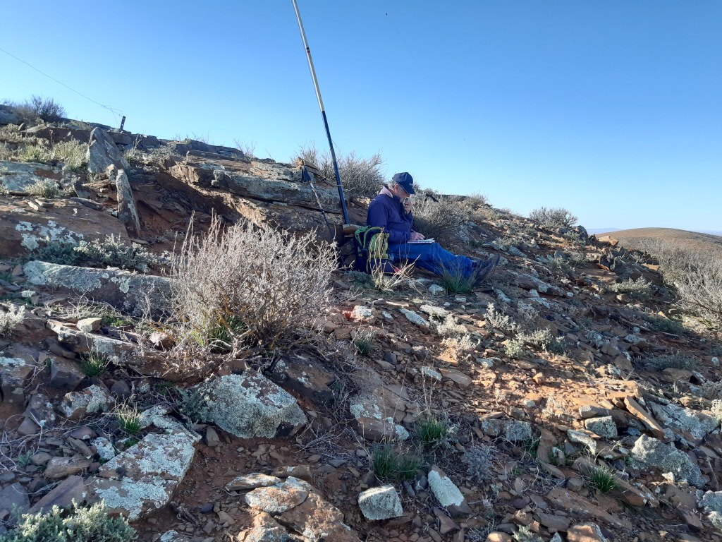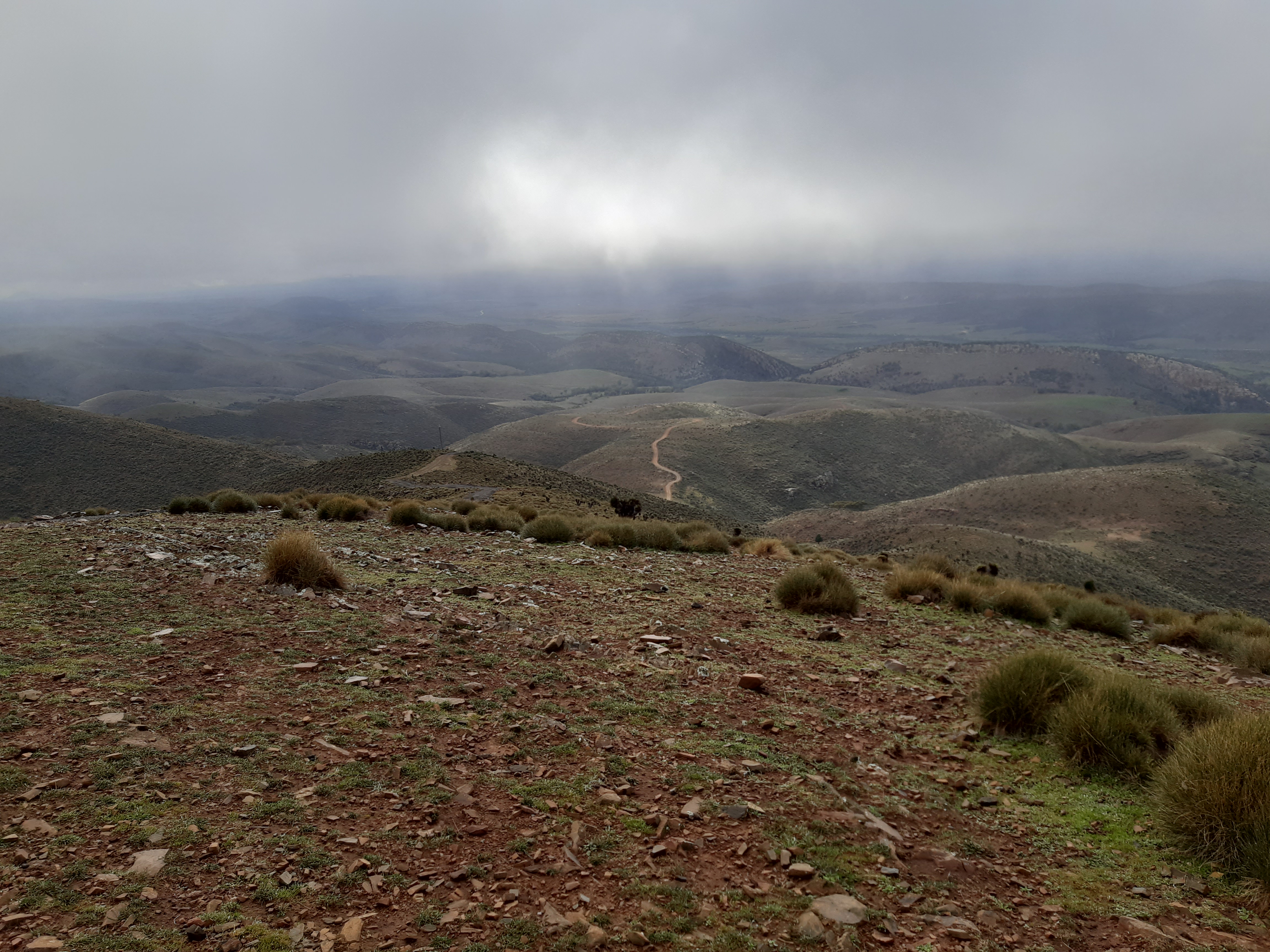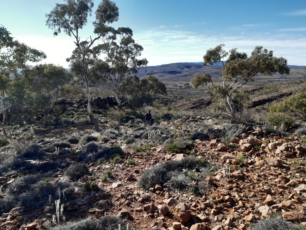 The poor old land scape is still not recovered from years of drought but it’s better than we have seen it for a while. Hugh and I got off the hill and then had to travel about 35 km to the next summit north of the homestead. Karkala Ridge is a 1.2 km hike up from the parking spot which is not a hard slog but quite rocky under foot.
