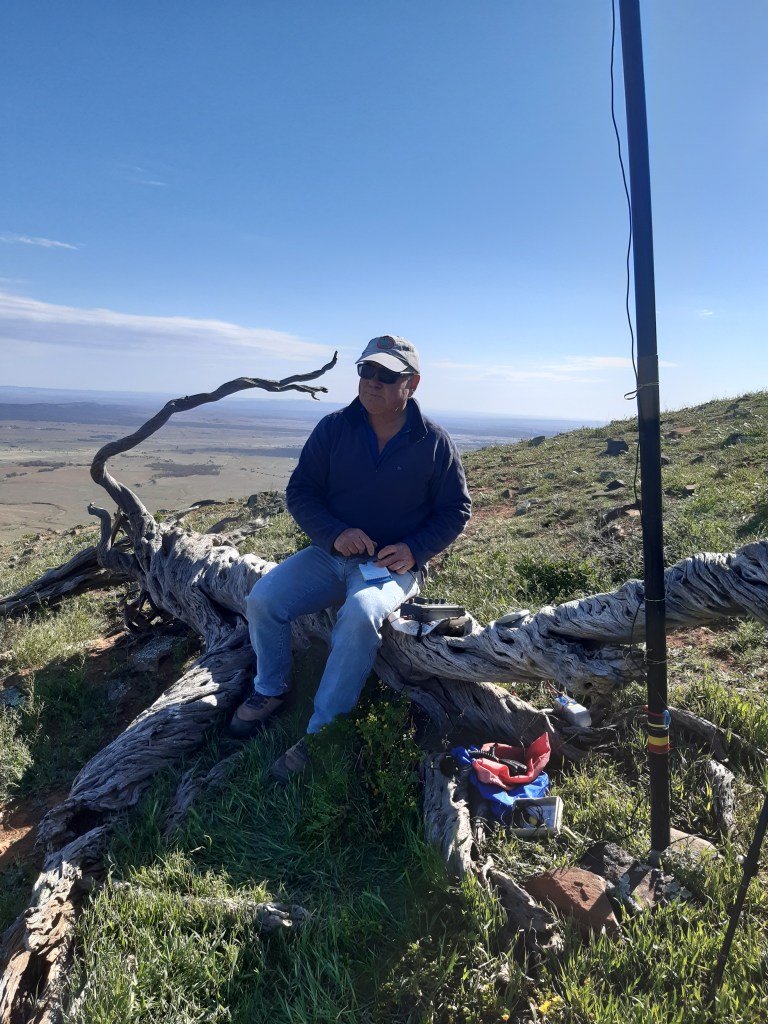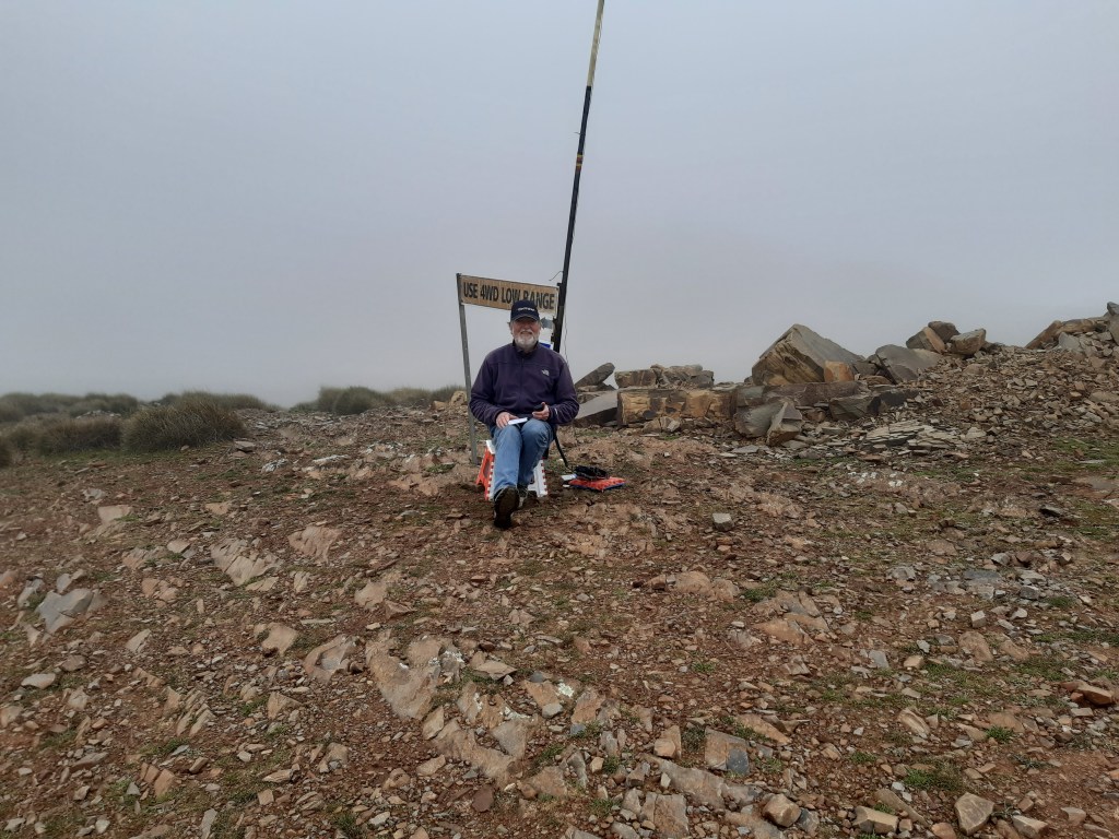Because there was road works on The Barrier Highway, Hugh found a way via mostly dirt roads to Peterborough from his home to try to save hold ups at the work sites. Once out of Peterborough we headed for Dawson then a back way into Nackara Hill which turned into some back tracking to find a way. When we got to the western end of the old road we normally take from the Eastern side we found a brand new fence across the roadway and no gate near by. We had to drive North towards Yunta then take another station track to get to the Summit. Being about 40 minutes late we were lucky enough to have a small group on 80m waiting for us after their normal morning Sked. Hugh and I went tag team on 80m SSB then got off the summit and headed to Yunta still another 90km away. On the way to Teetulpa Station we usually go to Waroonee Hill first it saves time getting there and we need to drive about 12 km of station tracks to the parking spot. Un eventful hike up probably the greenest we have seen it for a few years, we got on 80m SSB to find some chasers waiting then Hugh topped up his score on 40m SSB and I worked a few more on 40m CW.